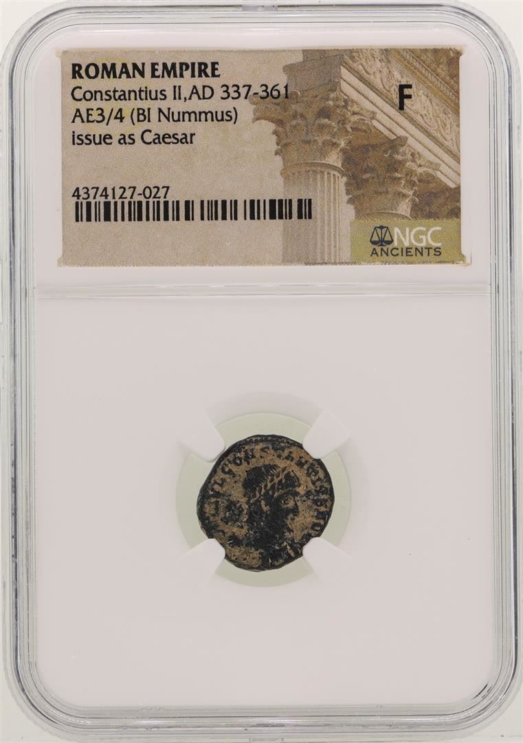 One Constantius II 337-361 AD Ancient Roman Empire Coin NGC F. NGC Certified.
