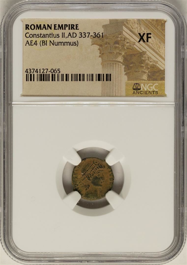One Constantius II, 337-361 AD Ancient Roman Empire Coin NGC XF. NGC Certified.