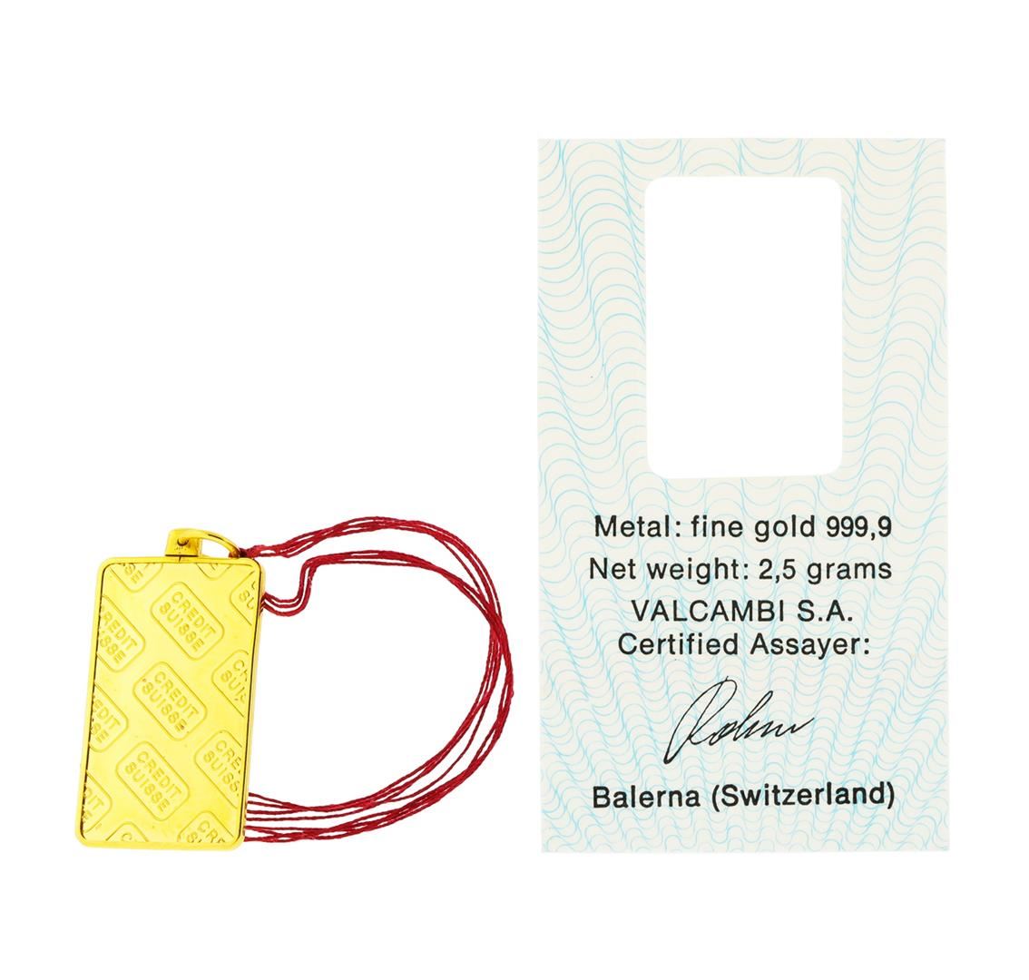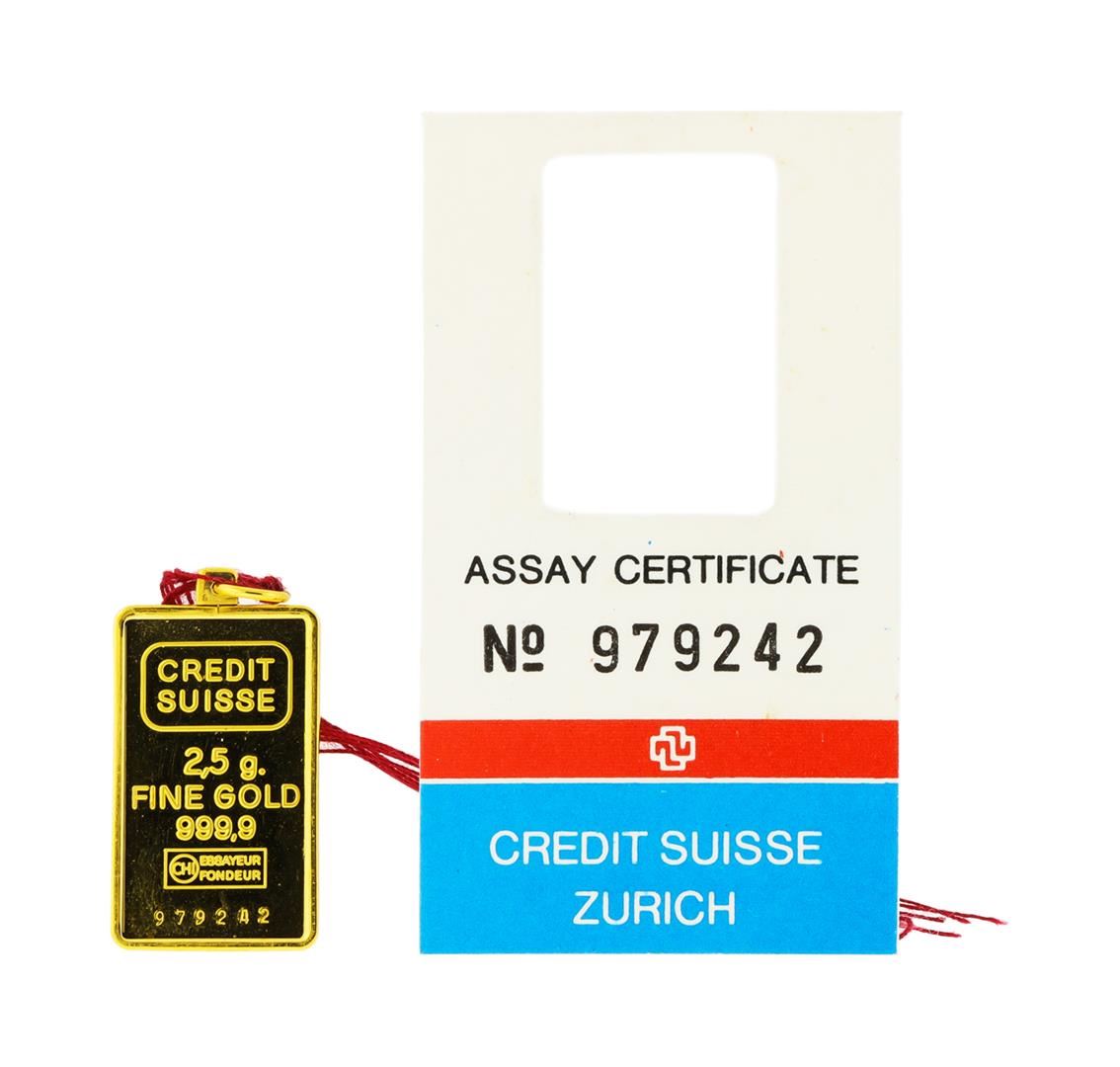 One Credit Sussie 2.5 gram 999.9 Fine Gold Ingot.