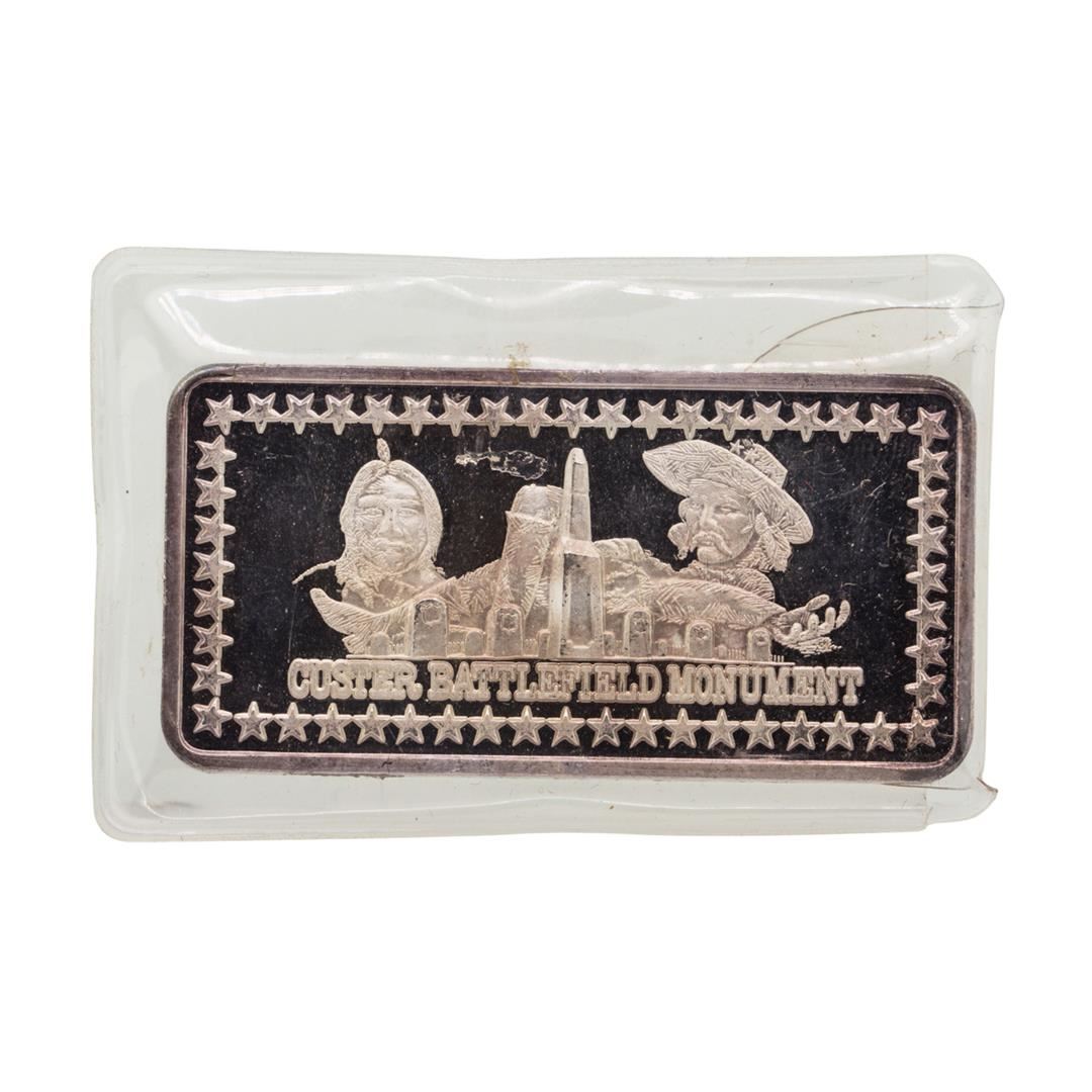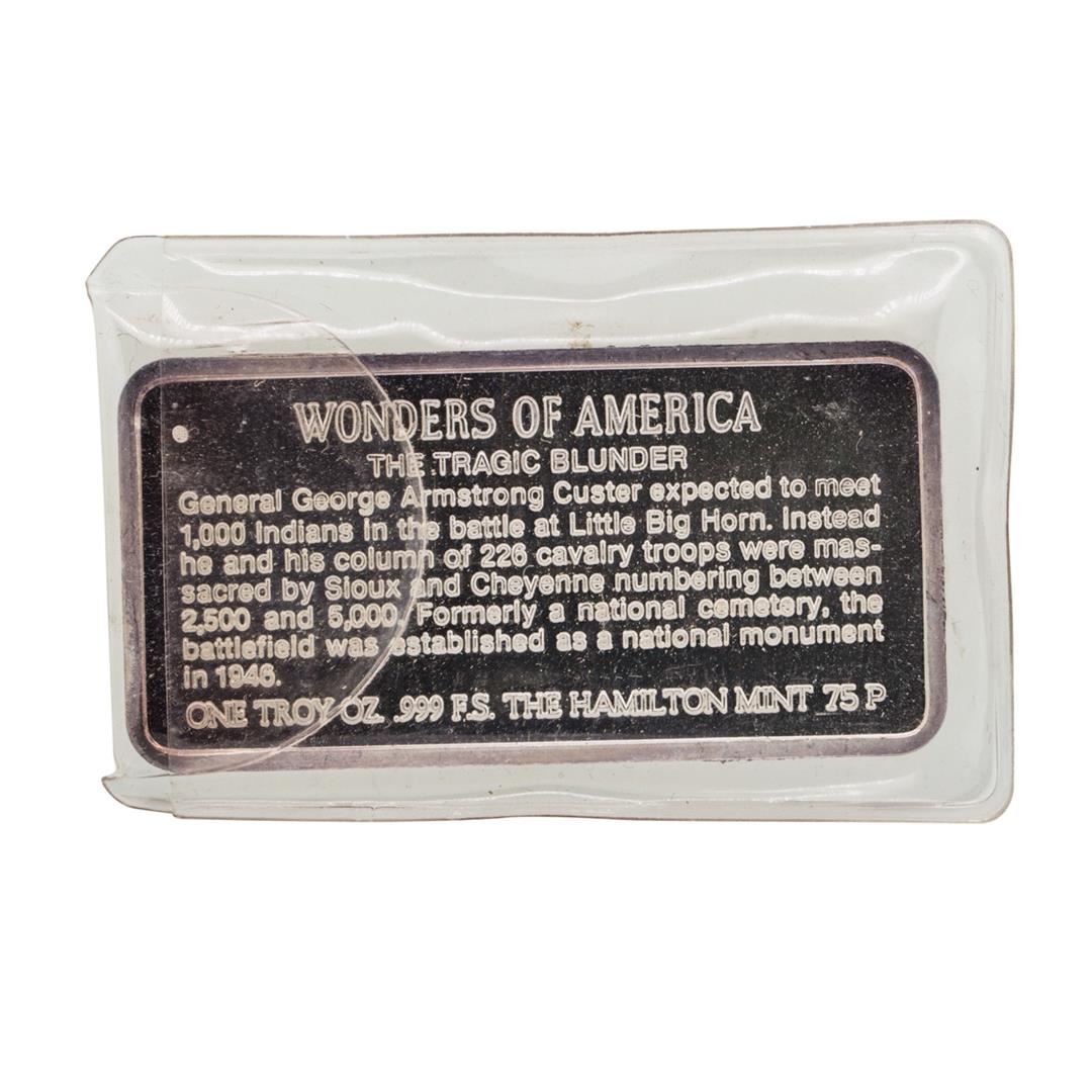 One Custer Battlefield Monument Wonders of America 1 oz .999 Fine Silver Art Bar.