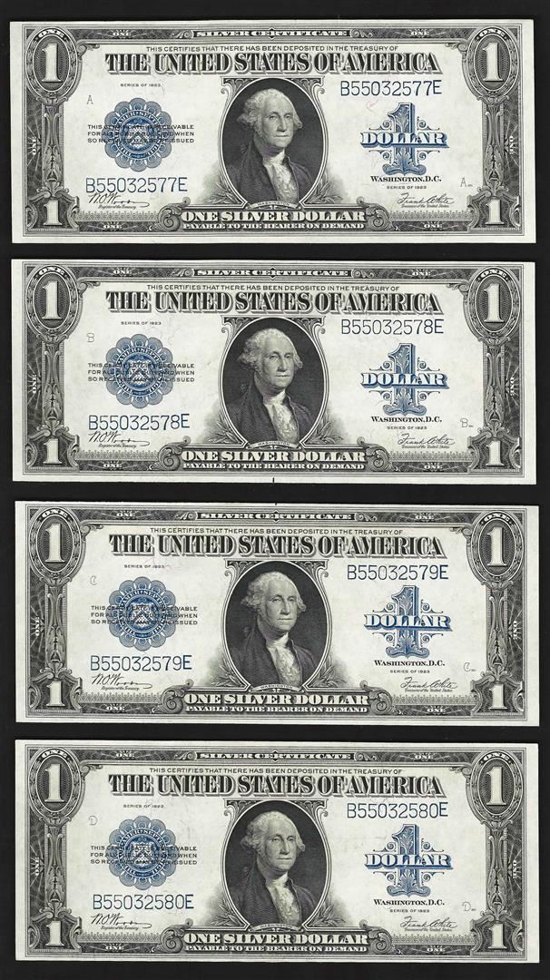 One Cut Sheet of (4) 1923 $1 Silver Certificate Notes.