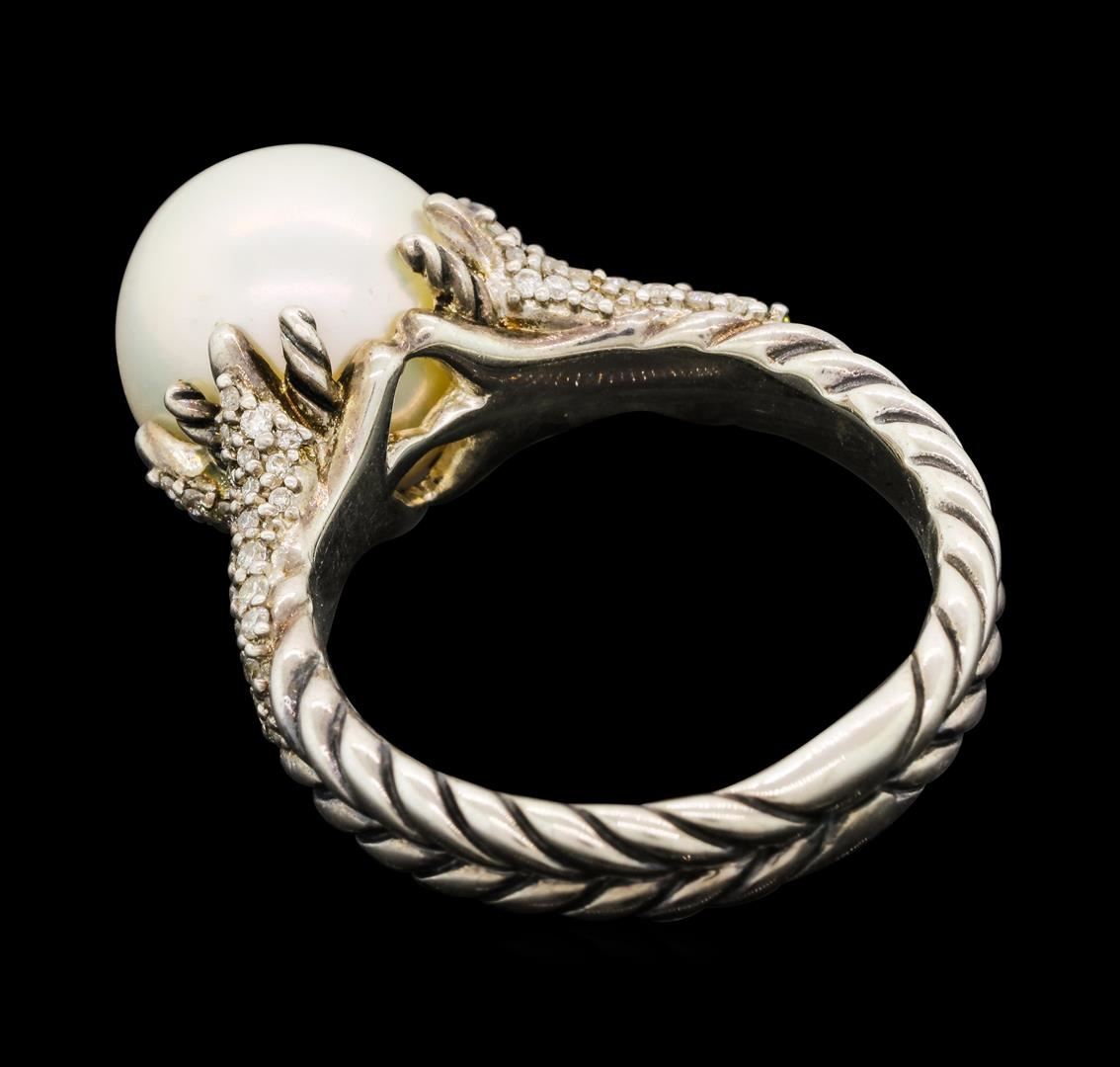 David Yurman .925 Silver 0.40 ctw Diamond and Pearl Ring