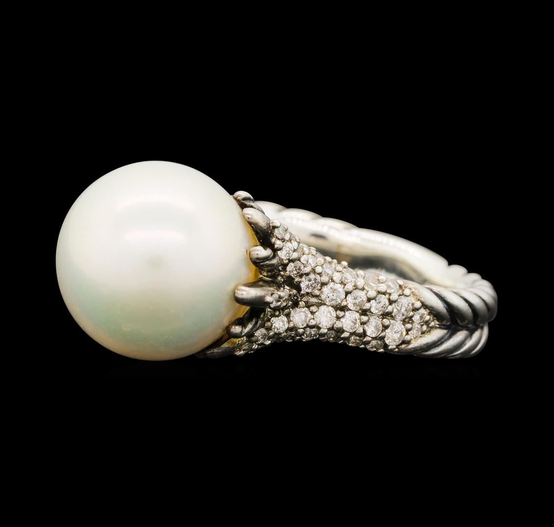 One lady's David Yurman ring featuring: .925 silver weighing 6.0 grams containing one 10mm freshwater peal and diamonds weighing 0.40ctw. The ring is a size 6.