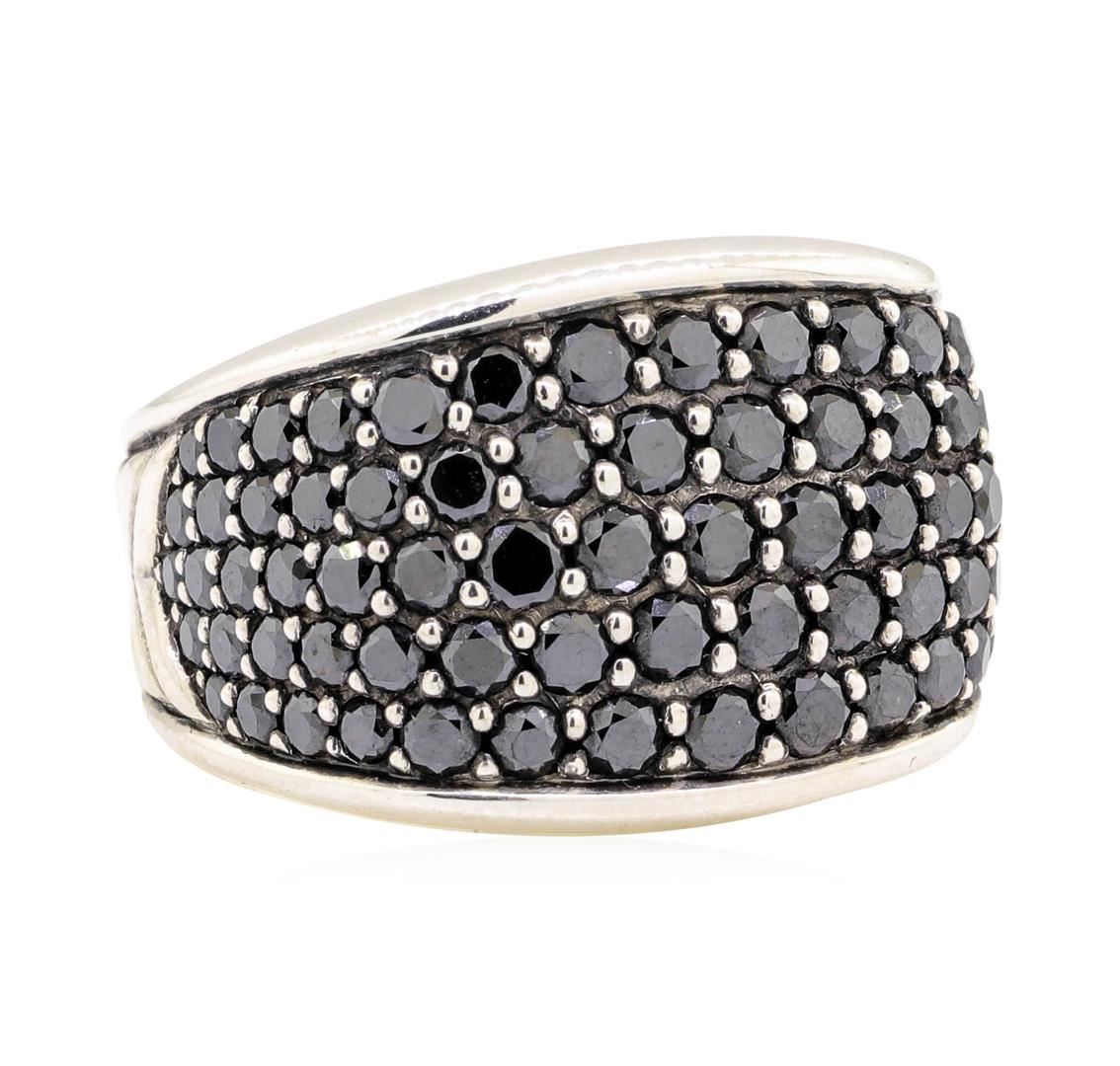 One electronically tested 925 silver Men's cast fashion designer ring with a tapered shank with a bright polish finish. The featured ladies ring has a shank measuring 7.70 millimeters wide. Trademark is D. Y. Identified with markings of '925'. Condition is new, good workmanship. Containing: Seventy-Two prong set round brilliant cut diamonds, measuring 3.00 - 1.80 x 1.49mm (depth est.) approximate total weight of 72 Stones = 4.00ct. Graded in the setting. Color Fancy Black Clarity I-1 to I-2 Cut Good. Total Weight of Diamonds 4.00ct.. Total Weight of Ring 24.00gm. GAS Appraised.
