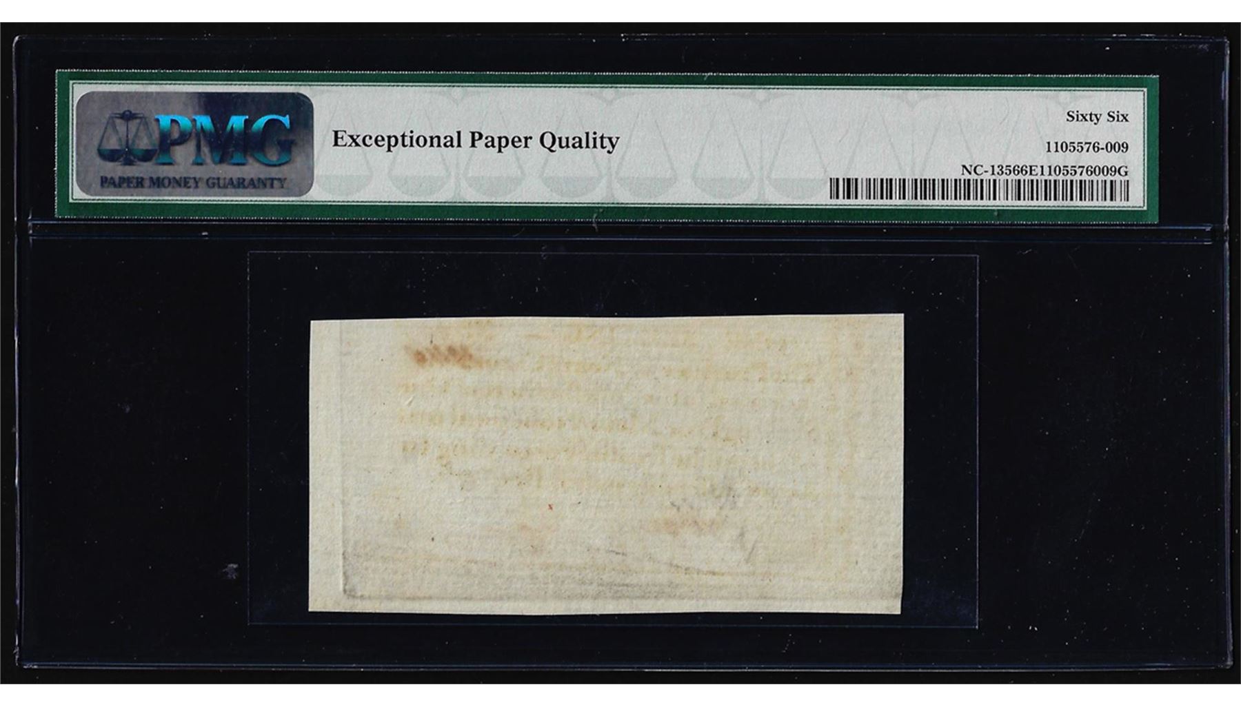 December, 1771 North Carolina 1 Shilling Colonial Currency Note PMG Gem Unc. 66EPQ