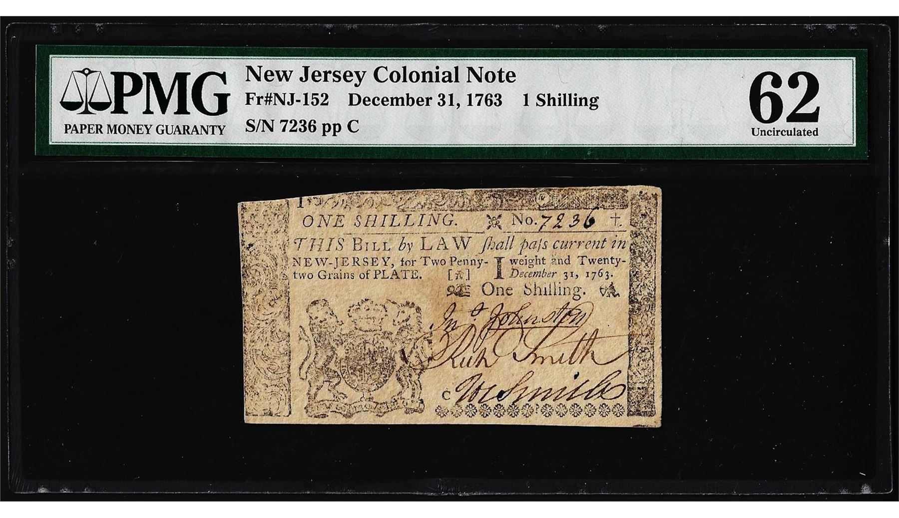 December 31, 1763 New Jersey 1 Shilling Colonial Currency Note PMG Uncirculated