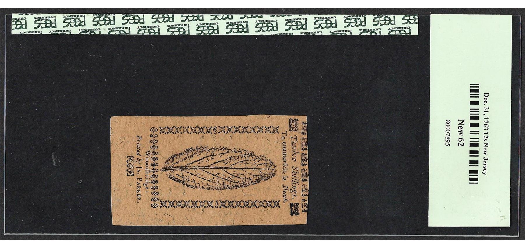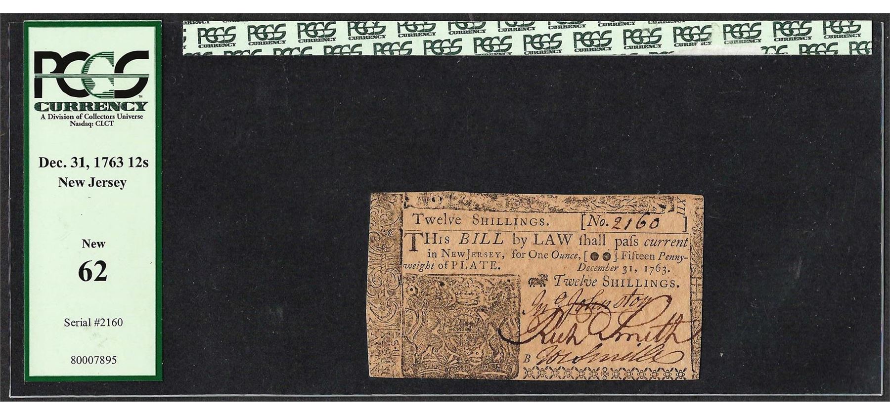 One December 31, 1763 New Jersey 12 Shillings Colonial Currency Note PCGS New 62. PCGS Graded.
