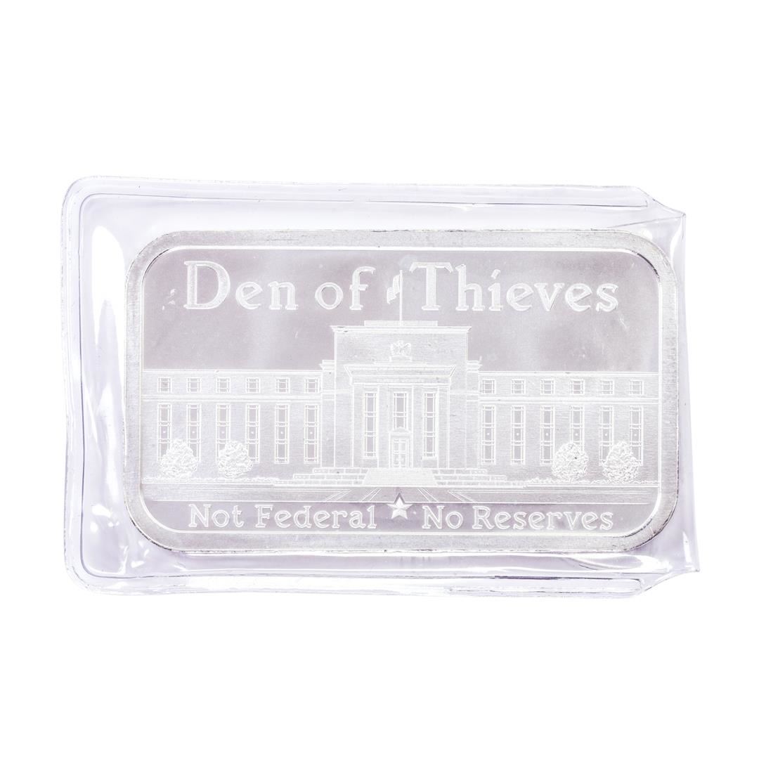 One Den of Thieves 1 Oz .999 Fine Silver Art Bar.