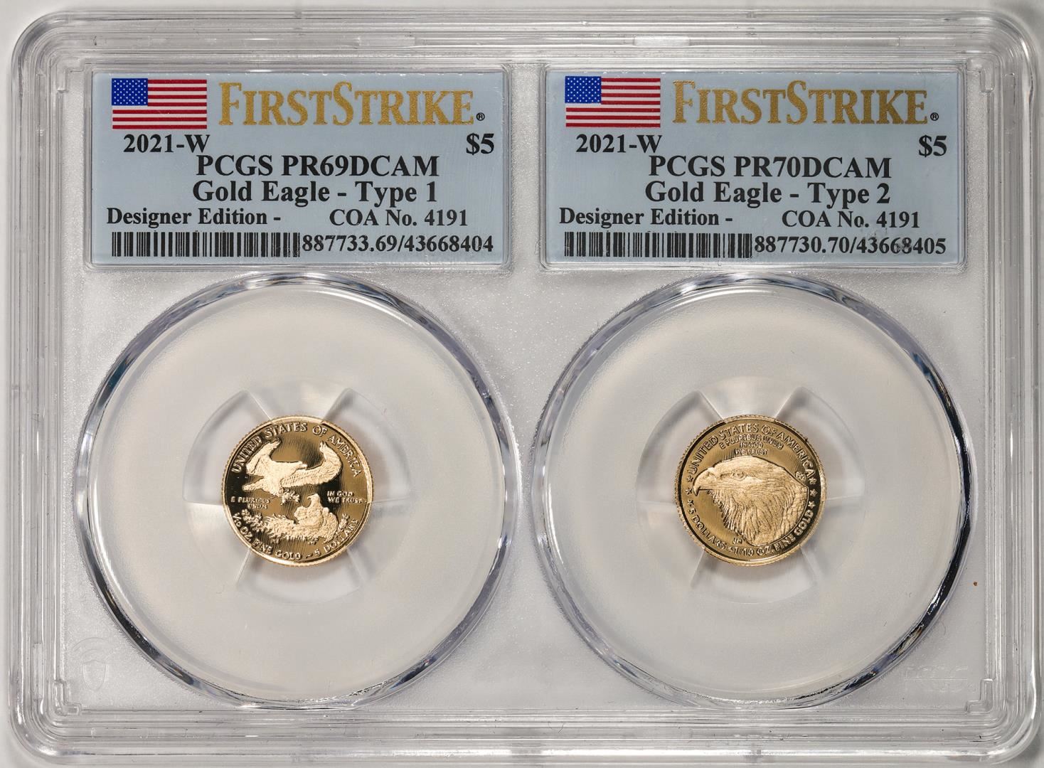 One Designer Set of 2021-W Ty. 1/2 $5 Proof American Gold Eagle Coins PCGS PR69/70DCAM FS. PCGS Graded.