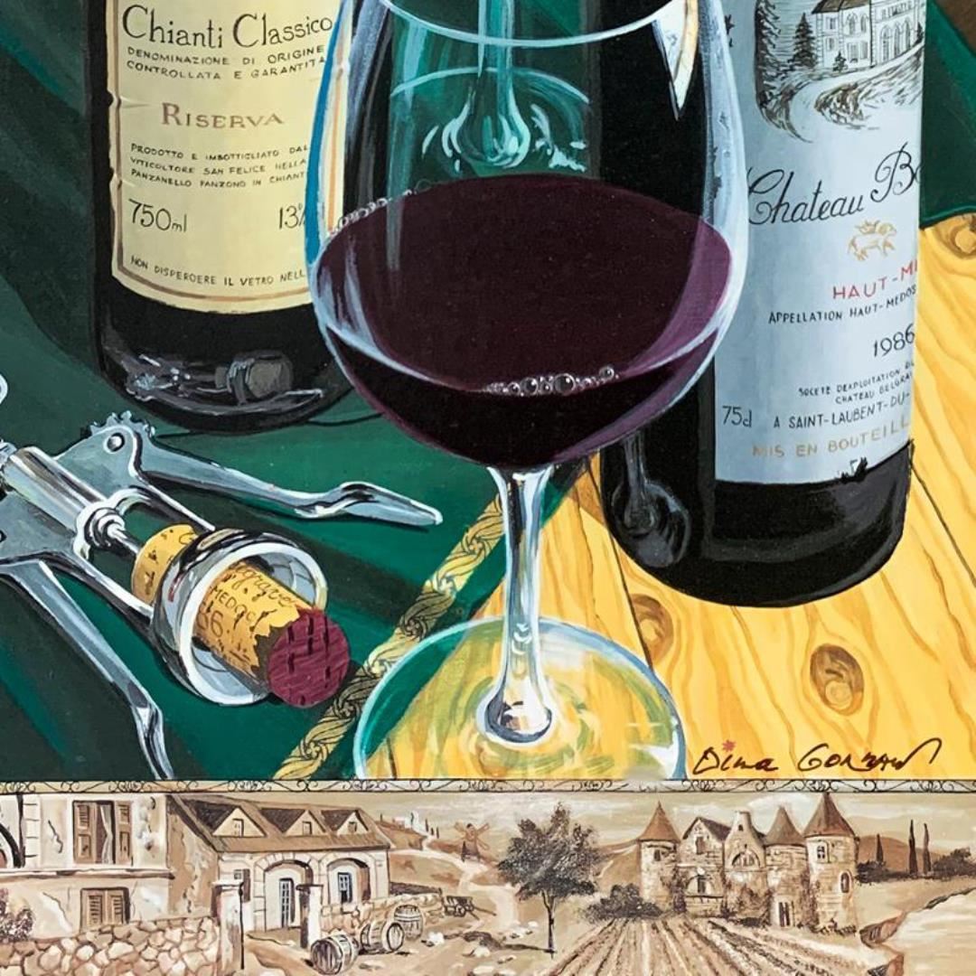 "Two to Pour" is a limited edition serigraph on paper by Dima Gorban. It is numbered and hand signed and includes a letter of authenticity. Measures approximately 18" x 8" (image).