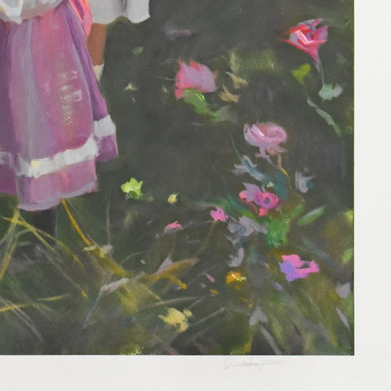 "Secret Meadow" is a limited edition serigraph on paper by Don Hatfield, AP numbered 66/78 and hand signed by the artist. Includes Letter of Authenticity. Measures approx. 33" x 35" (border), 28" x 29" (image).