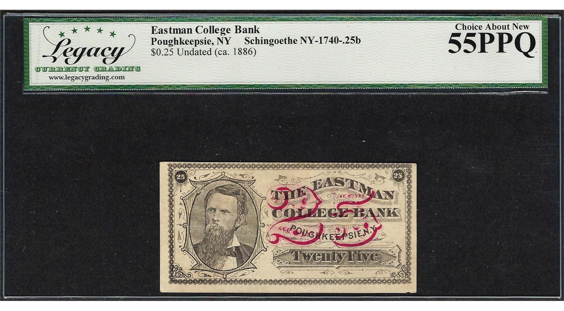 One Eastman College Bank 25 Cents Poughkeepsie, NY Obsolete Note Legacy Ch. About New 55PPQ. Legacy Graded.