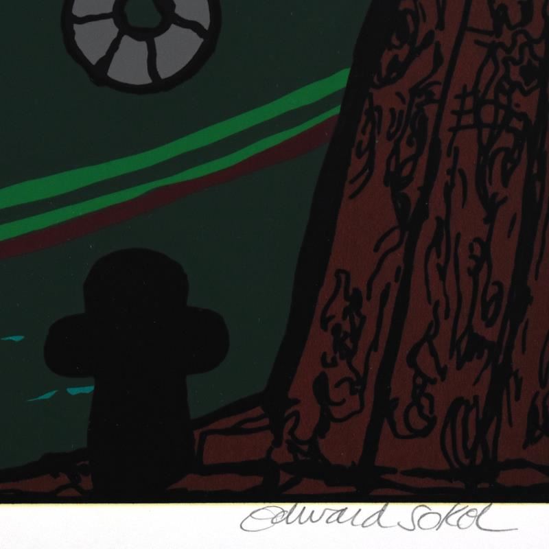 "Tugboats" is a limited edition lithograph on paper by Edward Sokol, numbered and hand signed by the artist. Includes Letter of Authenticity.Measures approx. 20" x 27.5" (with border), 16" x 24" (image).