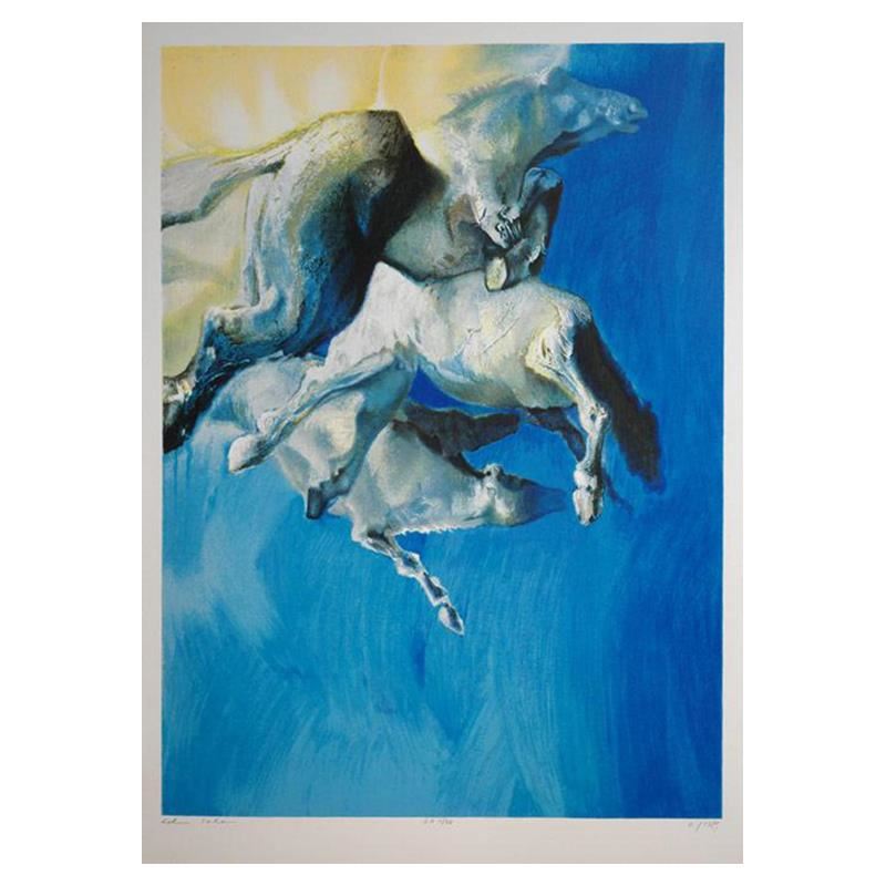Edwin Salomon "Wild Horses In Blue" Limited Edition Serigraph On Paper
