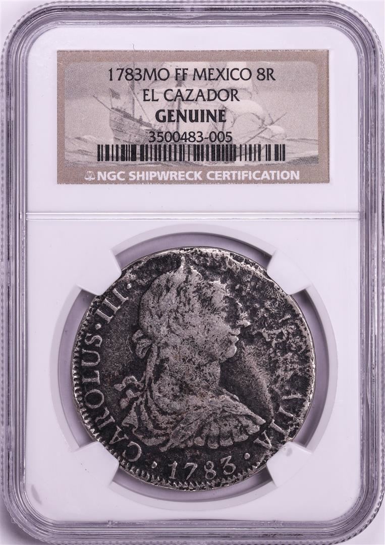 One El Cazador Shipwreck 1783MO FF Mexico 8 Reales Silver Coin NGC Genuine. NGC Certified.