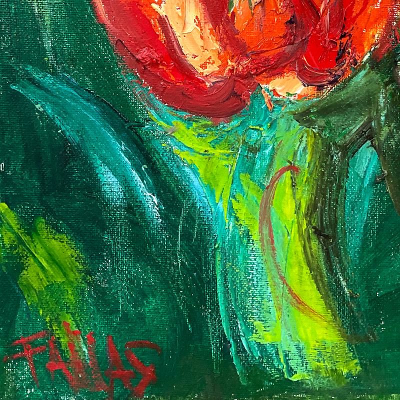 "Garden Treasures" is an original oil painting on canvas by Elliot Fallas, hand signed by the artist. This piece comes gallery wrapped. Includes Letter of Authenticity. Measures approx. 16" x 20" (image). The sides of the canvas are painted and it can be hung as is, but a frame is definitely recommended.