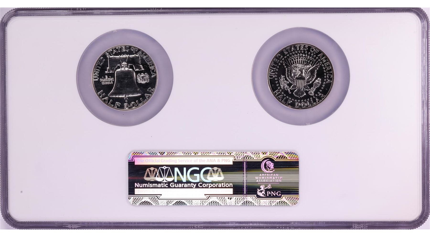 End of an Era Set 1963 & 1964 Proof Franklin and Kennedy Half Dollar Coins NGC PF69