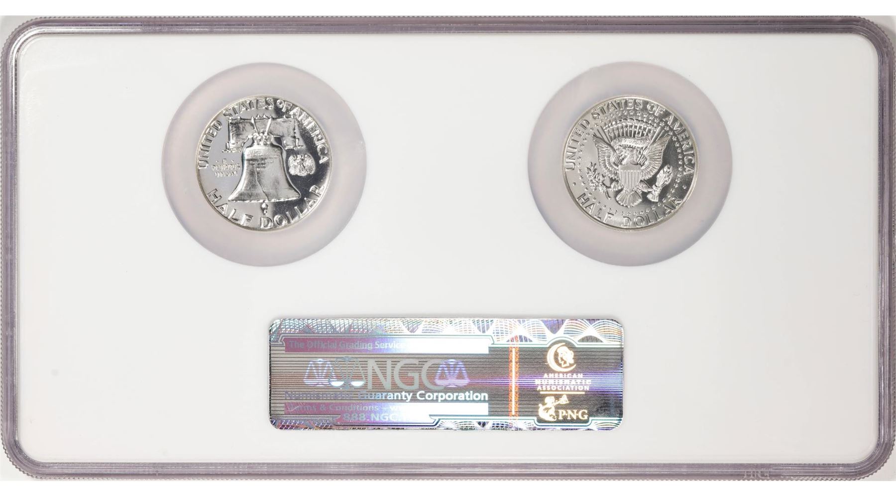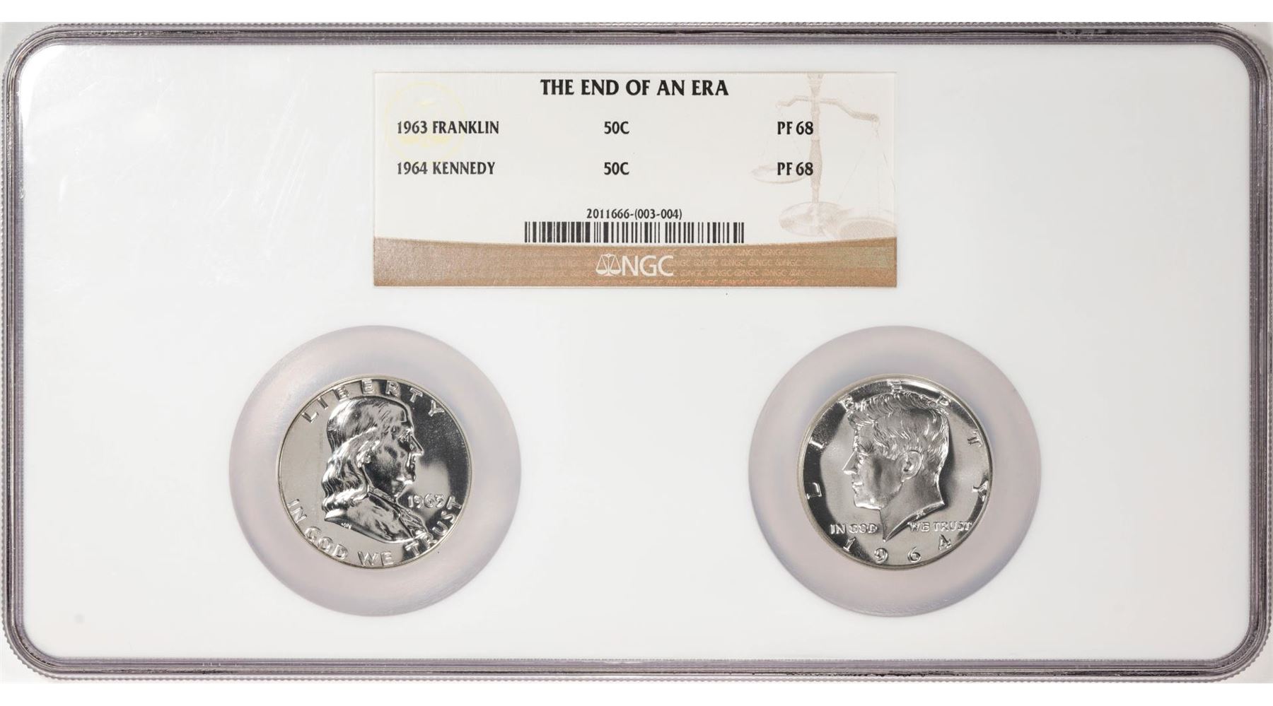 One End of an Era Set of 1963 Franklin & 1964 Kennedy Proof Half Dollar Coins NGC PF68. NGC Certified.
