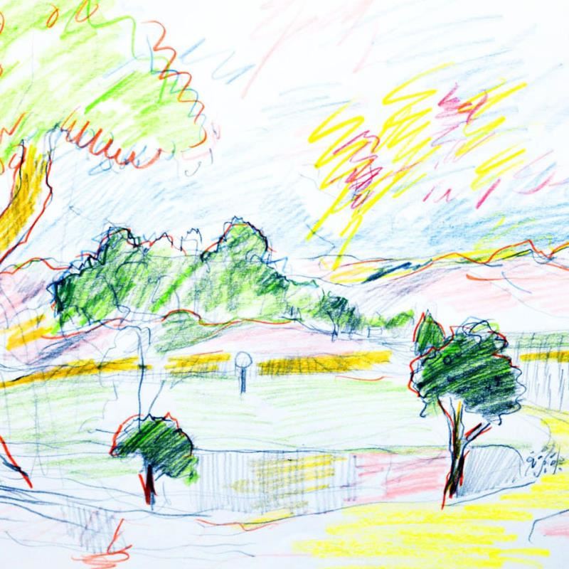 Ensrud Original "Niebaum-Coppola Vineyard, Napa Valley" Original Pencil On Paper