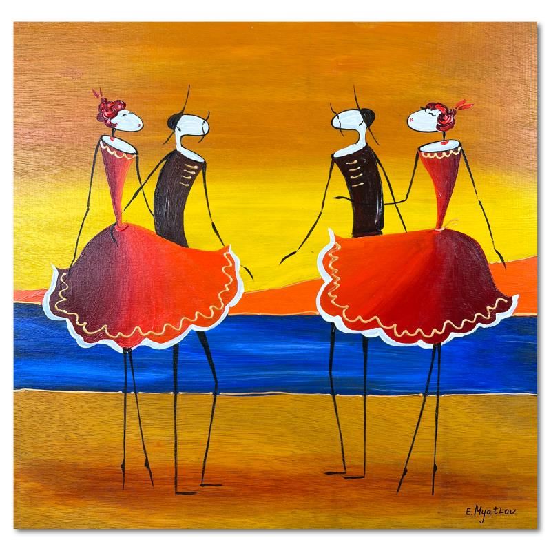 This is an original painting oil on wood panel by Ester Myatlov. Hand signed by the artist, this piece comes with a letter of authenticity. Measures approximately 12" x 12" (image).