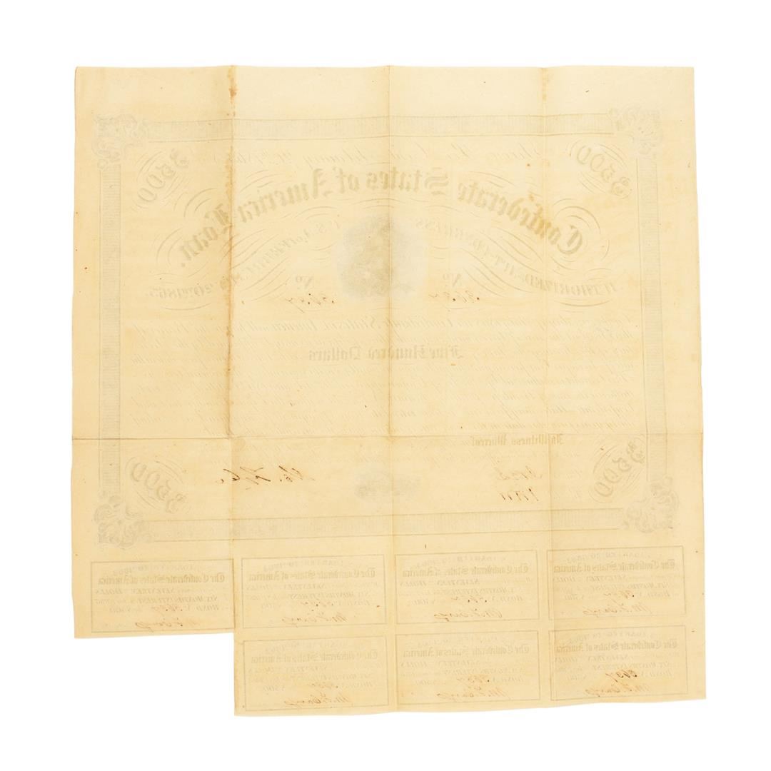One February 20, 1863 $500 Confederate States of America Bond.