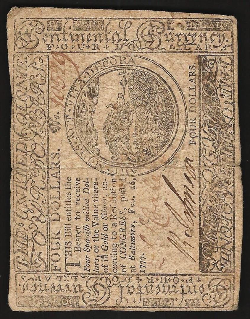 February 26, 1777 $4 Continental Currency Note Baltimore Issue
