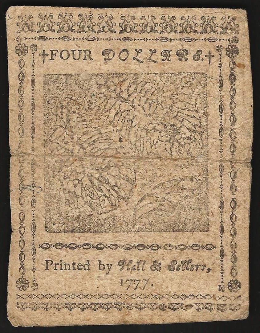One February 26, 1777 $4 Continental Currency Note Baltimore Issue.