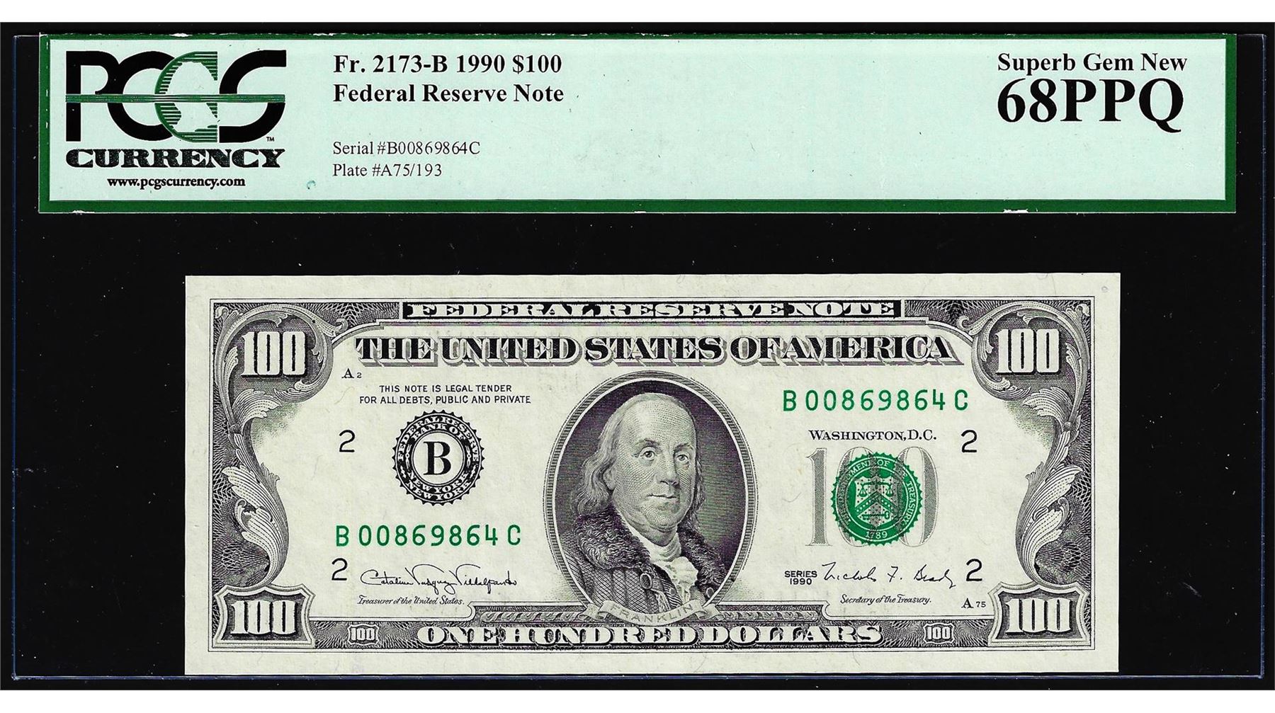 One Finest Known 1990 $100 Federal Reserve Note New York PCGS Superb Gem New 68PPQ. PCGS Graded.
