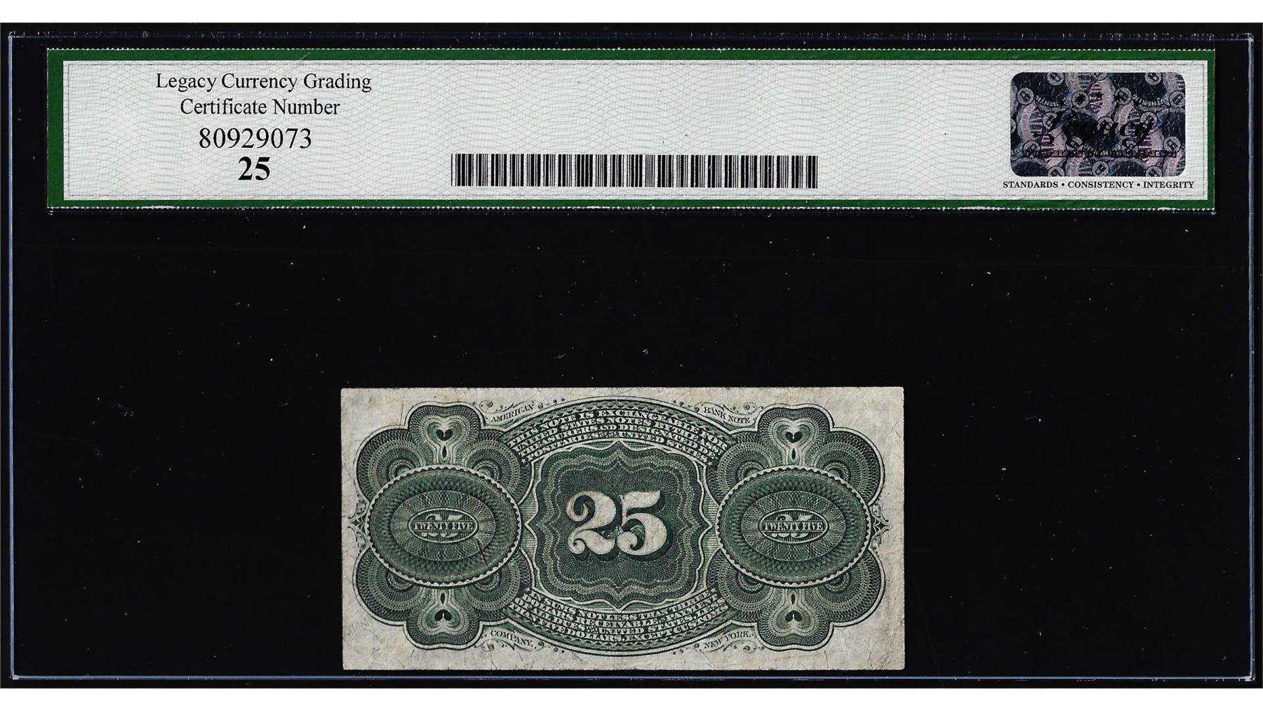 One Fourth Issue 25 Cents Fractional Currency Note Fr.1302 Legacy Very Fine 25. Legacy Graded.