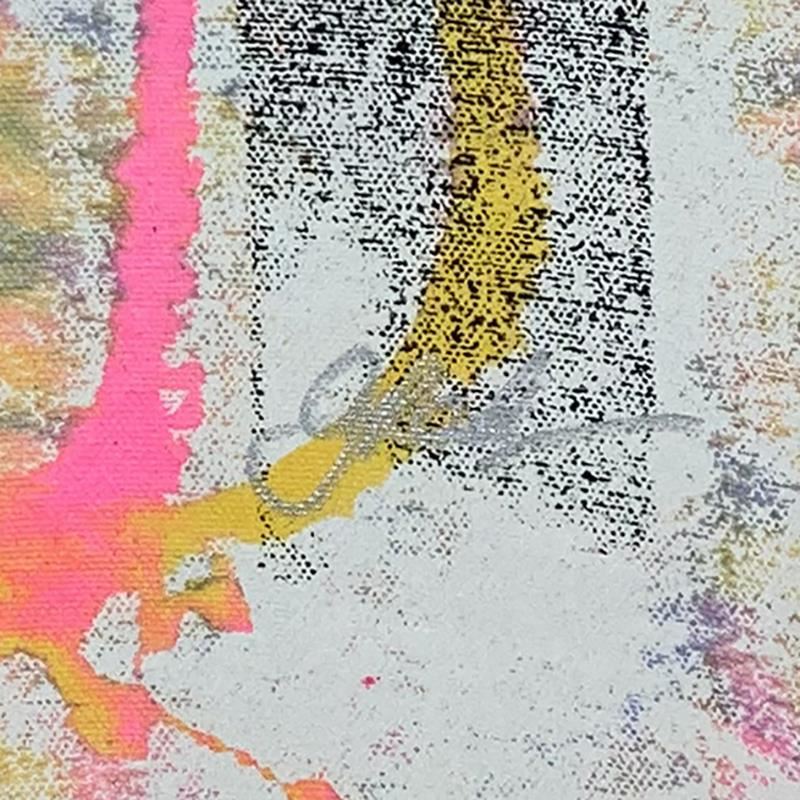 "Barbie" is an original hand pulled silkscreen and acrylic painting on canvas by Gail Rodgers. Hand signed by the artist, the piece comes with a letter of authenticity. This piece is meant to be gallery wrapped and measure approximately 23" x 23" and image dimensions (after stretching) 16" x 16" (image).