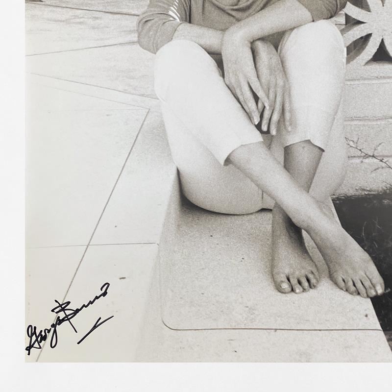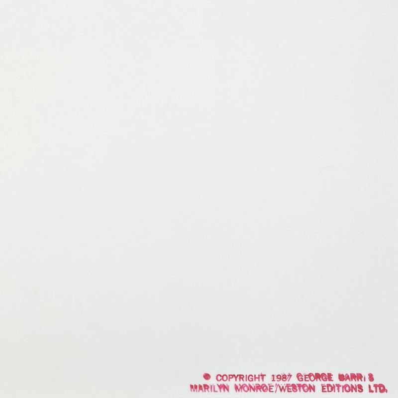 "Marilyn Monroe: The Last Shoot" is a photograph printed from the original negative taken by George Barris (1922-2016). This photo is part of a series entitled "The Last Photos"; they were taken in 1962 just two weeks before Monroe's death and are considered the last photos ever taken of the icon. This framed piece is numbered inverso and hand signed by the photographer. This photo bears the Edward Weston copyright stamp inverso and Includes Letter of Authenticity. Measures approx. 19" x 22" (frame), 11" x 14" (image).