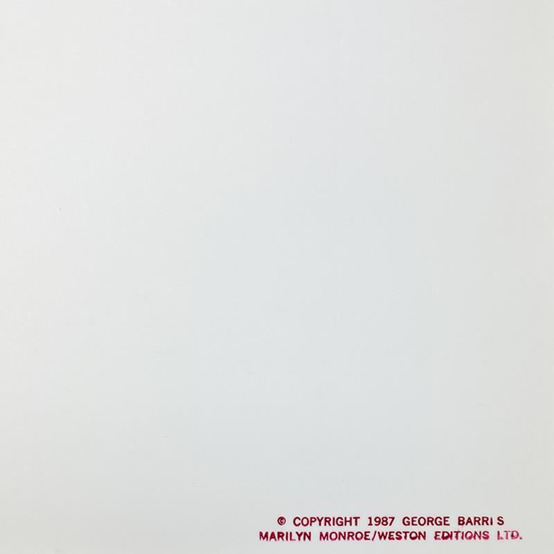 "Marilyn Monroe: The Last Shoot" is a photograph printed from the original negative taken by George Barris (1922-2016). This photo is part of a series entitled "The Last Photos"; they were taken in 1962 just two weeks before Monroe's death and are considered the last photos ever taken of the icon. This piece is numbered inverso and hand signed by the photographer. This photo bears the Edward Weston copyright stamp inverso and Includes Letter of Authenticity. Measures approx. 11" x 14" (image).