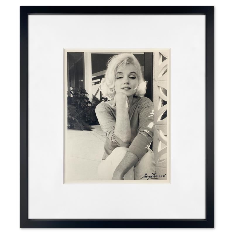 "Marilyn Monroe: The Last Shoot" is a photograph printed from the original negative taken by George Barris (1922-2016). This photo is part of a series entitled "The Last Photos"; they were taken in 1962 just two weeks before Monroe's death and are considered the last photos ever taken of the icon. This framed piece is numbered inverso and hand signed by the photographer. This photo bears the Edward Weston copyright stamp inverso and Includes Letter of Authenticity. Measures approx. 19" x 22" (frame), 10" x 13" (image).