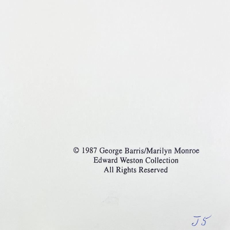 "Marilyn Monroe: The Last Shoot" is a photograph printed from the original negative taken by George Barris (1922-2016). This photo is part of a series entitled "The Last Photos"; they were taken in 1962 just two weeks before Monroe's death and are considered the last photos ever taken of the icon. This framed piece is numbered inverso and hand signed by the photographer. This photo bears the Edward Weston copyright stamp inverso and Includes Letter of Authenticity. Measures approx. 19" x 22" (frame), 11" x 14" (image).