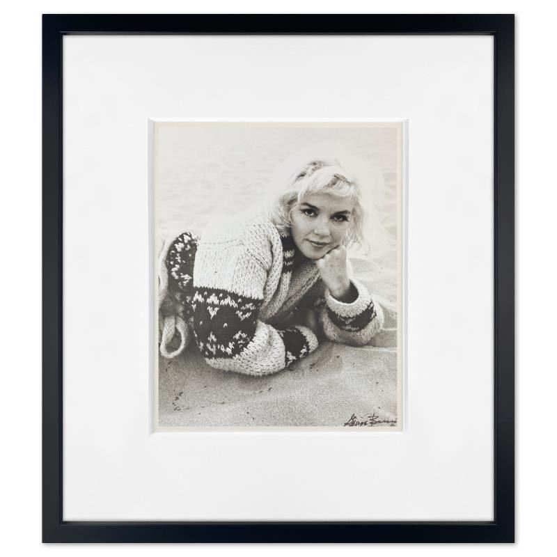 "Marilyn Monroe: The Last Shoot" is a photograph printed from the original negative taken by George Barris (1922-2016). This photo is part of a series entitled "The Last Photos"; they were taken in 1962 just two weeks before Monroe's death and are considered the last photos ever taken of the icon. This framed piece is numbered inverso and hand signed by the photographer. This photo bears the Edward Weston copyright stamp inverso and Includes Letter of Authenticity. Measures approx. 19" x 22" (frame), 10" x 13" (image).
