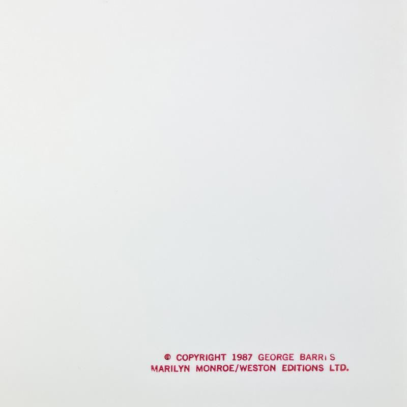 "Marilyn Monroe: The Last Shoot" is a photograph printed from the original negative taken by George Barris (1922-2016). This photo is part of a series entitled "The Last Photos"; they were taken in 1962 just two weeks before Monroe's death and are considered the last photos ever taken of the icon. This piece is numbered inverso and hand signed by the photographer. This photo bears the Edward Weston copyright stamp inverso and Includes Letter of Authenticity. Measures approx. 11" x 14" (image).