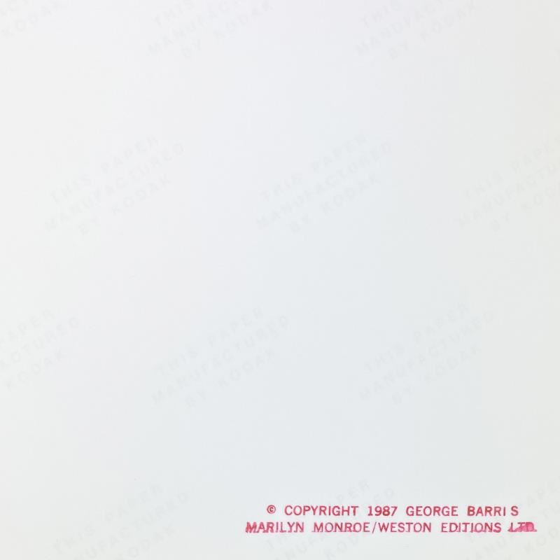 "Marilyn Monroe: The Last Shoot" is a photograph printed from the original negative taken by George Barris (1922-2016). This photo is part of a series entitled "The Last Photos"; they were taken in 1962 just two weeks before Monroe's death and are considered the last photos ever taken of the icon. This framed piece is numbered inverso and hand signed by the photographer. This photo bears the Edward Weston copyright stamp inverso and Includes Letter of Authenticity. Measures approx. 19" x 22" (frame), 11" x 14" (image).