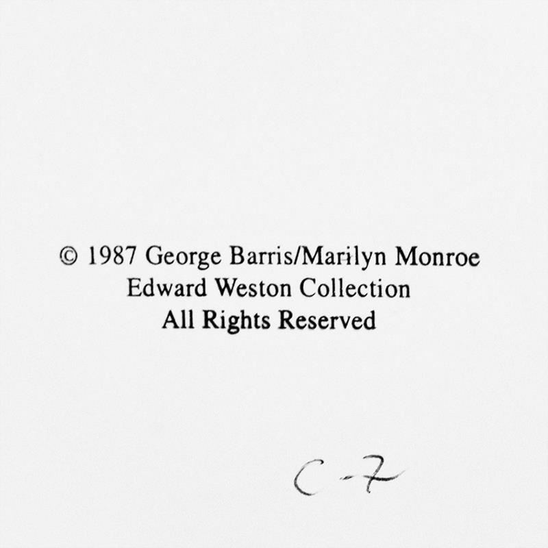 "Marilyn Monroe: The Last Shoot" is a photograph printed from the original negative taken by George Barris (1922-2016), hand signed by the photographer. This photo is part of a series entitled "The Last Photos"; they were taken in 1962 just two weeks before Monroe's death and are considered the last photos ever taken of the icon. This photo bears the Edward Weston copyright stamp inverso and Includes Letter of Authenticity. Measures approx. 11" x 14" (image). Please note: due to the age of this piece the paper is slightly wavy.
