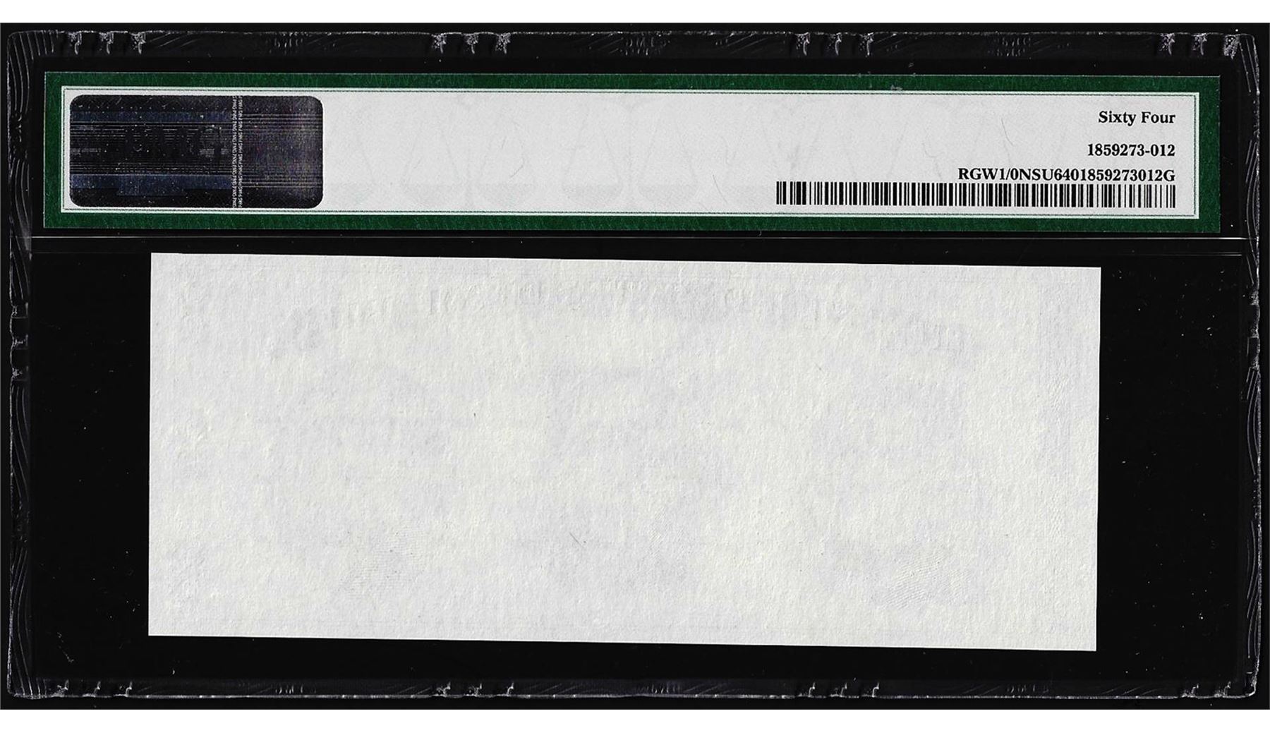 Any coins sold referencing a third-party grading service are sold AS IS without any express or implied warranty. Notes sold referencing a third-party grading service are sold AS IS without any express or implied warranty. Grading, condition or other attributes of any lot may have a material effect on its value, and the opinion of others, including third-party grading services may differ with that of BKA. BKA shall not be bound by any prior or subsequent opinion, determination, or certification by any grading service. Bidder specifically waives any claim to right of return of any item because of the opinion, determination, or certification, or lack thereof, by any grading services. Third-party graded notes are not returnable for any reason whatsoever.