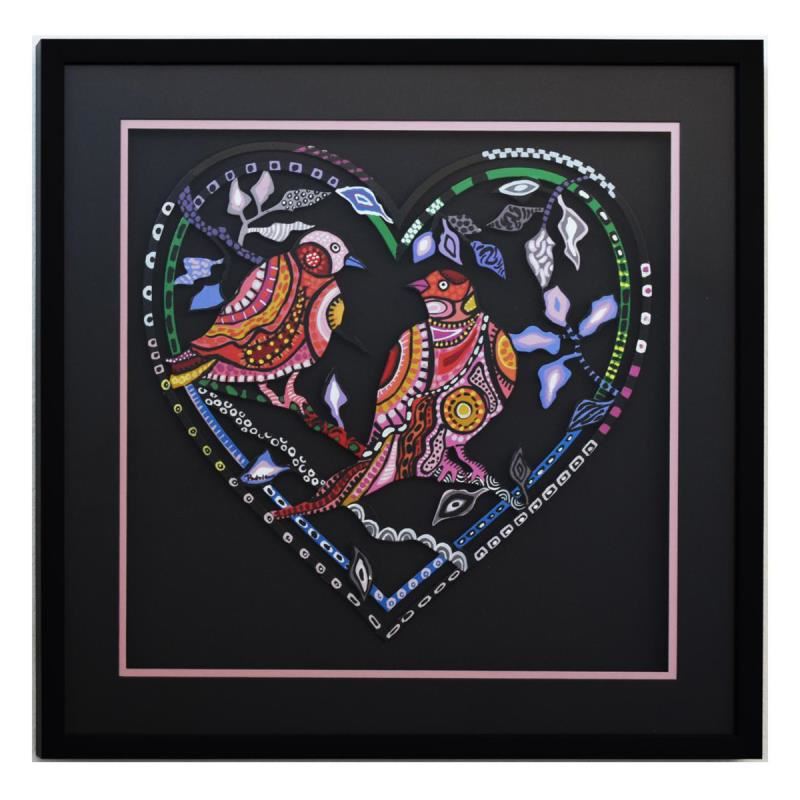 Patricia Govezensky, "Love Birds XV" Hand Signed Original Painting on Laser Cut Steel with Letter of Authenticity. Measures Approximately 23" x 23" (framed), 16.1" x 16.1" (piece).