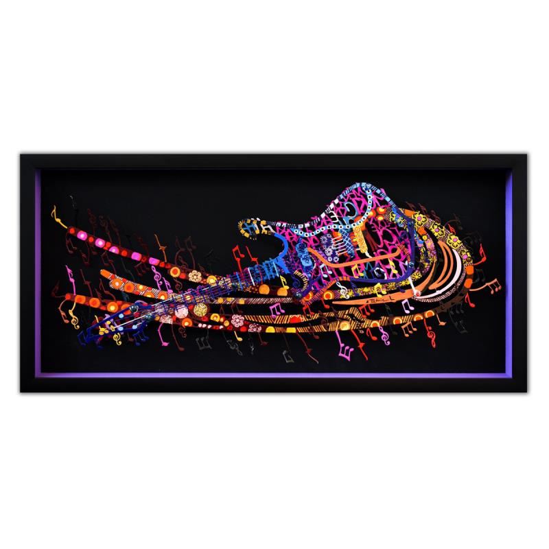 Patricia Govezensky, "Rock 'N' Roll" Hand Signed Original Painting on Cutout Steel with Letter of Authenticity. Measures Approximately 18" x 38" (framed), 16" x 35" (piece).