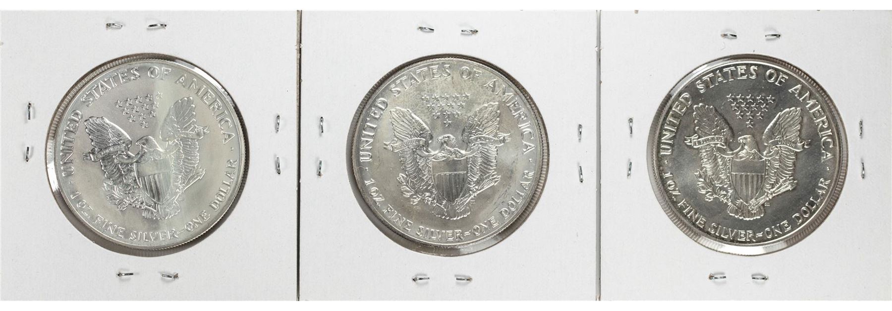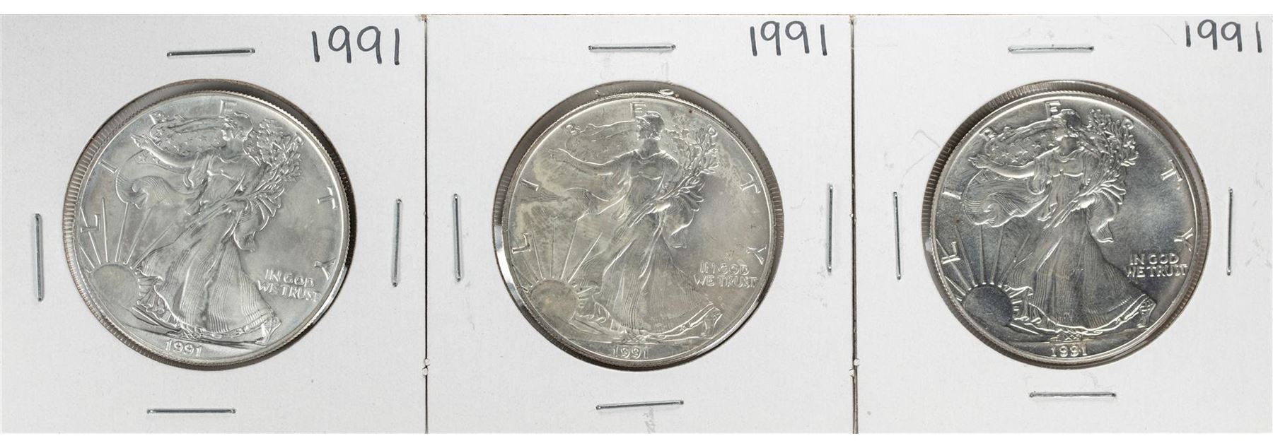 One Group of (3) 1991 $1 American Silver Eagle Coins.