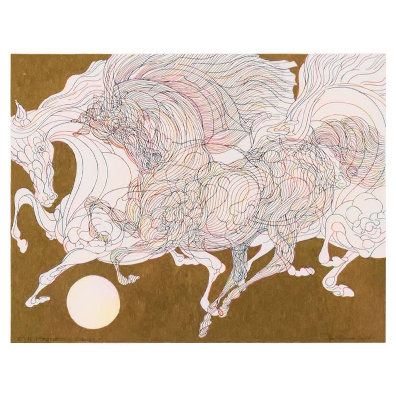 Guilaume Azoulay "Etude Trois Chevaux" Original Drawing on Paper