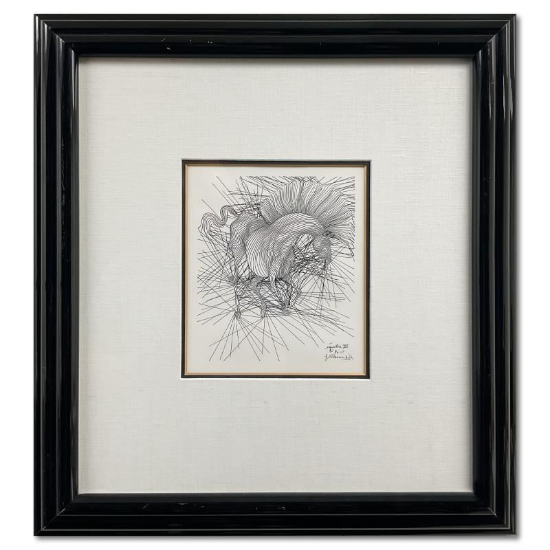 This is an original pen and ink drawing on paper by Guillaume Azoulay, hand signed by the artist. This piece comes framed. Includes Letter of Authenticity. Measures approx. 21.5" x 19.5" (frame), 8" x 7" (image). There is some minor wear on the frame.