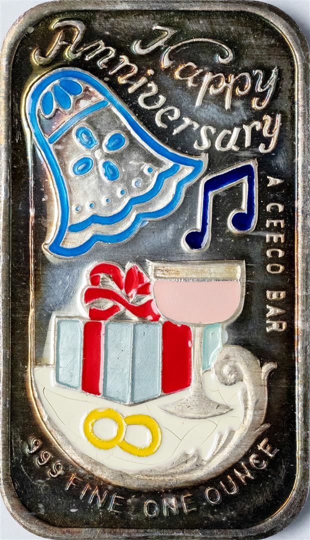 One Happy Anniversary Enamel Silver Art Bar.