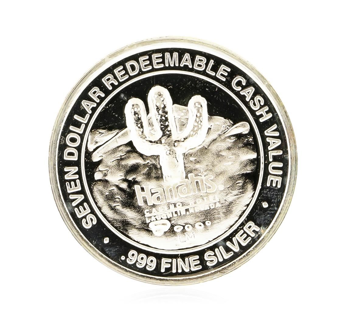 One Harrahs Casino Hotel $7 Casino Gaming Token .999 Silver Limited Edition.