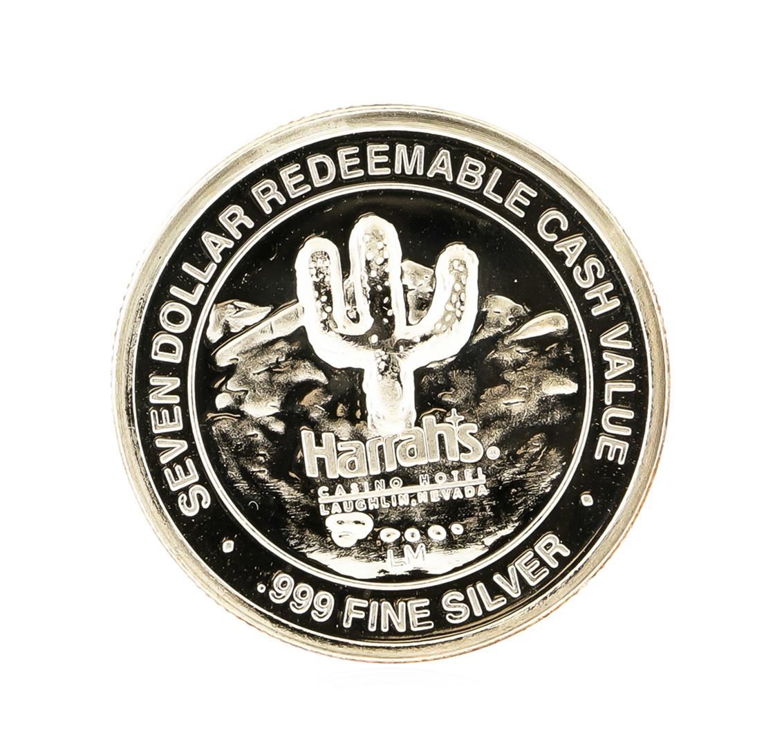 Harrahs Casino Hotel $7 Casino Gaming Token .999 Silver Limited Edition