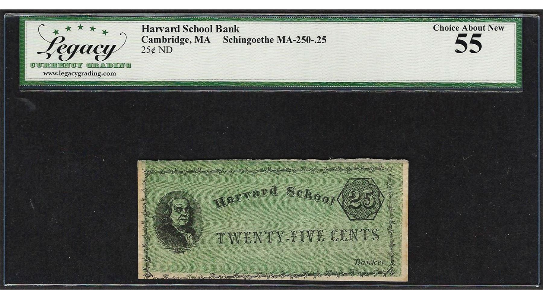Harvard School Bank 25 Cents Cambridge, MA Obsolete Note Legacy Choice About New 55