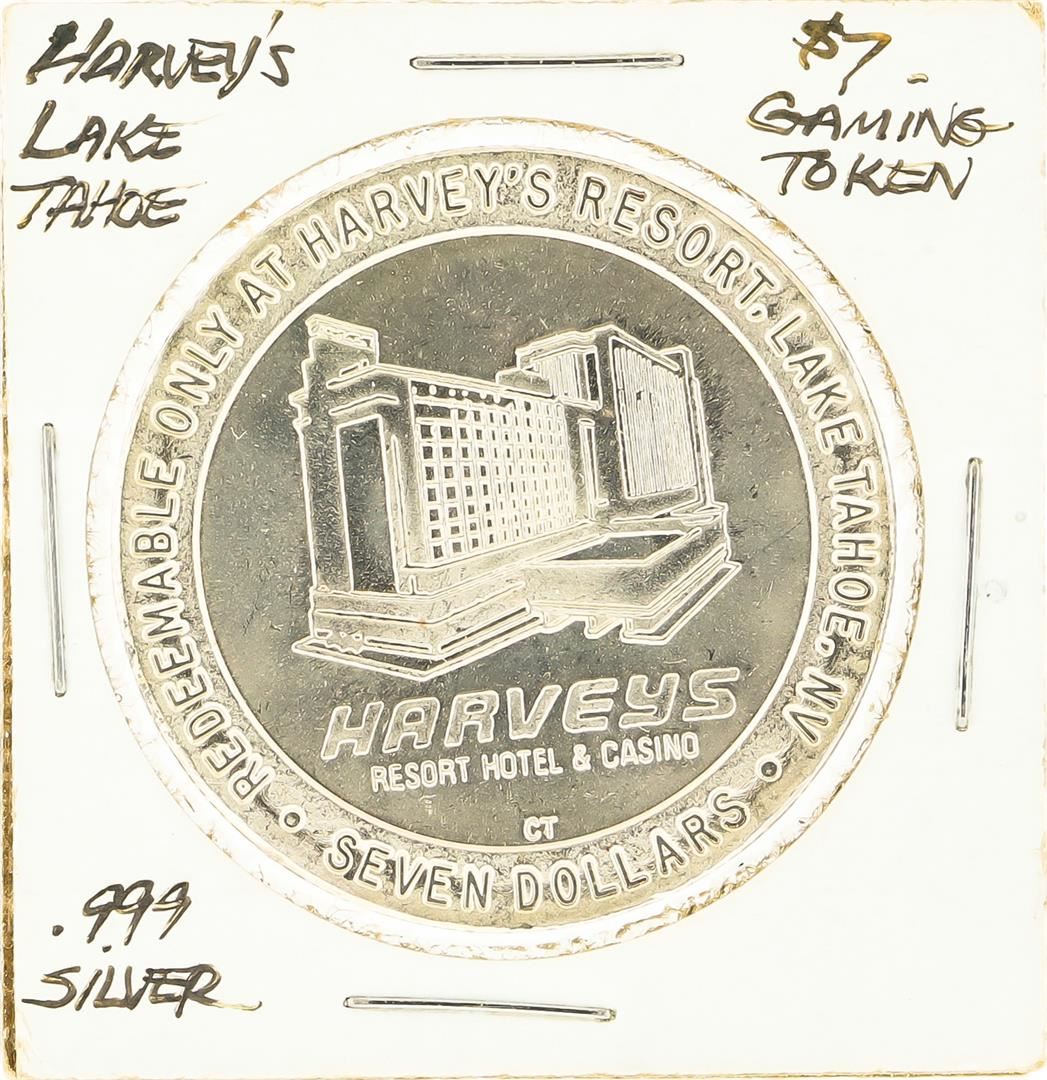 One Harveys Resort Hotel $7 Casino Gaming Token .999 Silver Limited Edition.