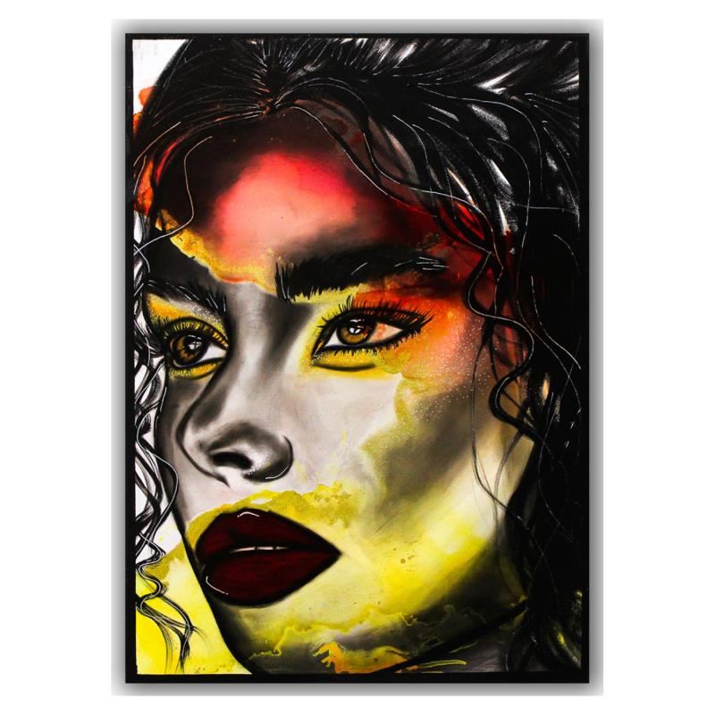 "Alessia" is an original painting mixed media on canvas by Hen Maman. The piece is hand signed, stretched and comes with a letter of authenticity. Measures approximately 27.5" x 20". This piece requires special handling and may have alonger than usual turnaround.